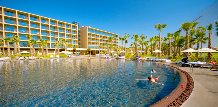 - Ideal for those who seeking a relaxing beach break. With a wonderful outdoor swimming pool and a wide area of surrounded by extensive palm and olive tree gardens, you can let your kids play at the pool while you play tennis, squash or you’re at the gym, sauna or jacuzzi, or playing golf. The perfect place for a relaxing holiday.